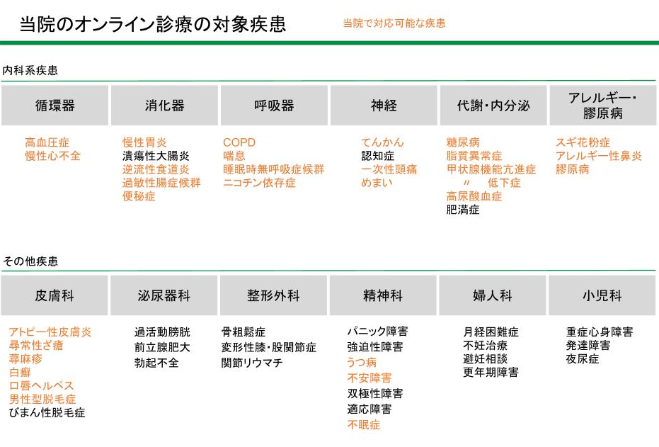 ※ 当院への受診歴のない方を含め、様々な疾患に対応しております。詳しくはお問い合わせ下さい。
